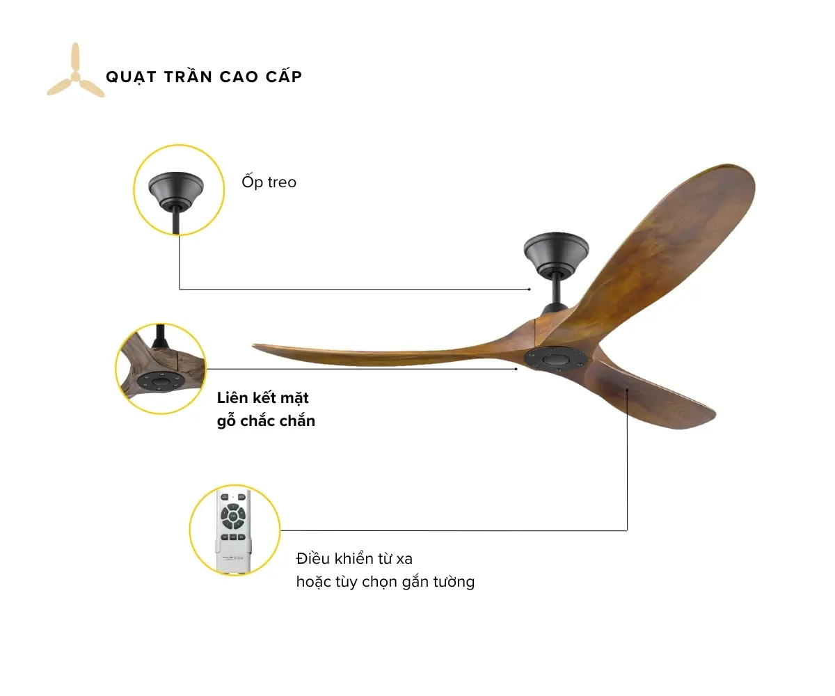 Quạt trần 3 cánh gỗ Pearl – Sự kết hợp hoàn hảo giữa thẩm mỹ và hiệu năng